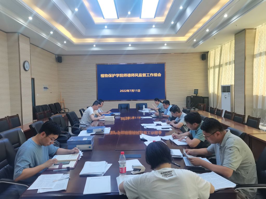 本网讯 7月11日,植物保护学院在中西部综合楼1211会议室召开师德建设与监督工作组会议,会议由院党委书记、师德建设与监督工作组组长张平主持,工作组全体成员参加会议。