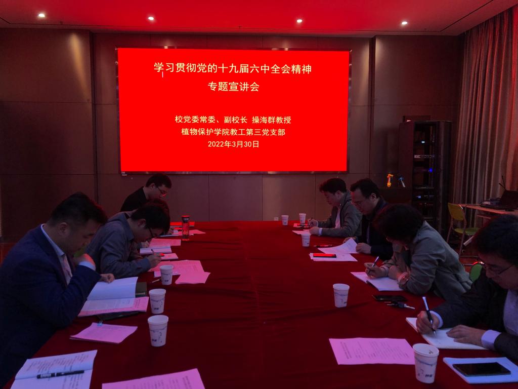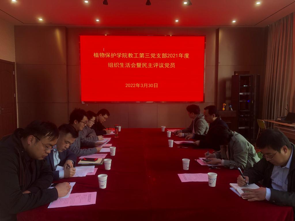 本网讯 3月30日下午,植物保护学院教工第三党支部在中西部综合楼1201会议室召开2021年度组织生活会,校党委常委、副校长操海群以普通党员身份参加会议,院党委副书记汪小强到会指导。会议由支部负责同志主持。