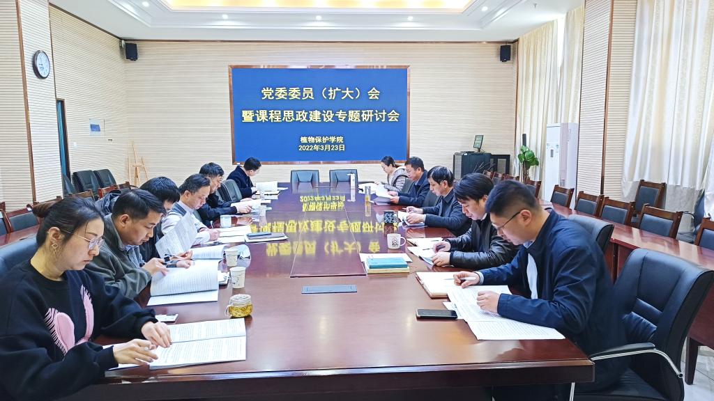 会议研究了《植物保护学院推进课程思政建设实施细则》,对下一步具体工作作了部署。各系(实验中心)汇报了课程思政建设学习研讨活动开展情况。(王成阳 通讯员:周贤超)