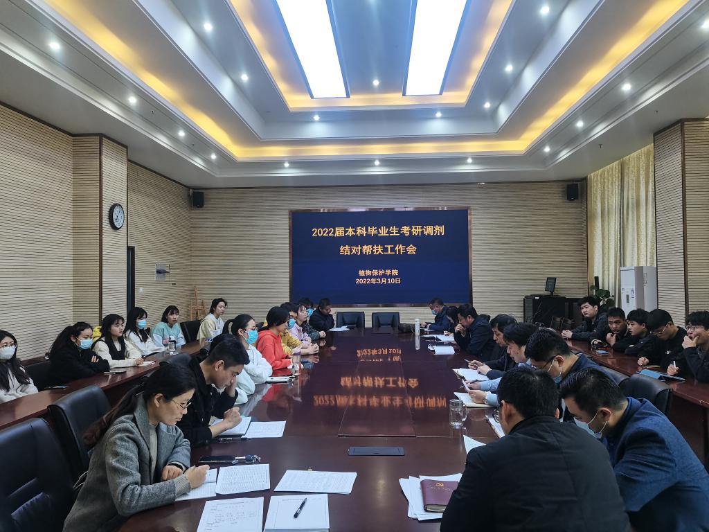 本网讯 3月10日,植物保护学院在1213会议室召开2022届本科毕业生考研调剂结对帮扶工作会。学院班子成员、结对帮扶教师以及有调剂意愿的学生参加会议。会议由学院党委副书记、纪委书记、副院长汪小强主持。