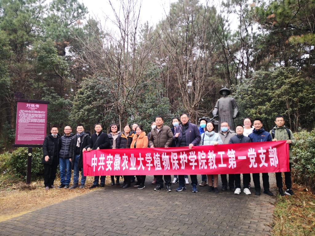 本网讯 1月9日,植物保护学院教工第一党支部全体党员教师赴刘铭传故居和紫蓬山开展主题党日活动。活动由支部书记汪章勋主持,本次活动是为了加强基层党组织建设和凝聚力,促进爱国主义教育,同时提高青年教师理论和实践相结合的能力。