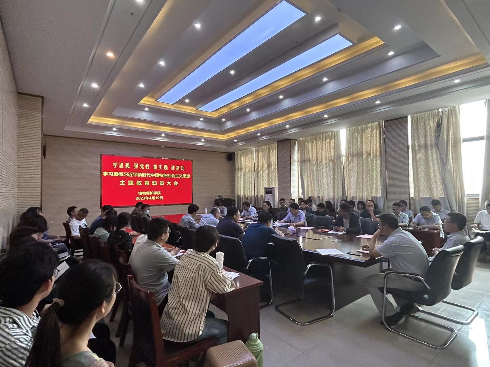 本网讯 4月17日下午,植物保护学院在中西部综合楼1213会议室召开学习贯彻习近平新时代中国特色社会主义思想主题教育动员会。学院党委书记刘柳主持会议并传达了习近平总书记重要讲话精神以及中央、省委主题教育工作会议精神。常务副院长潘月敏传达了学校主题教育工作会议精神,党委副书记汪小强传达了学校主题教育工作方案。院党政领导班子成员、党委委员、全体教职工、学生党员代表参加会议。
