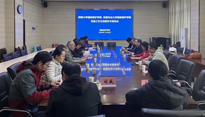 本网讯 11月30日下午,西南大学植物保护学院院长刘怀一行来我院开展党建与学术工作交流。双方学院党政领导班子成员、党支部书记、部分教师代表参加座谈交流。