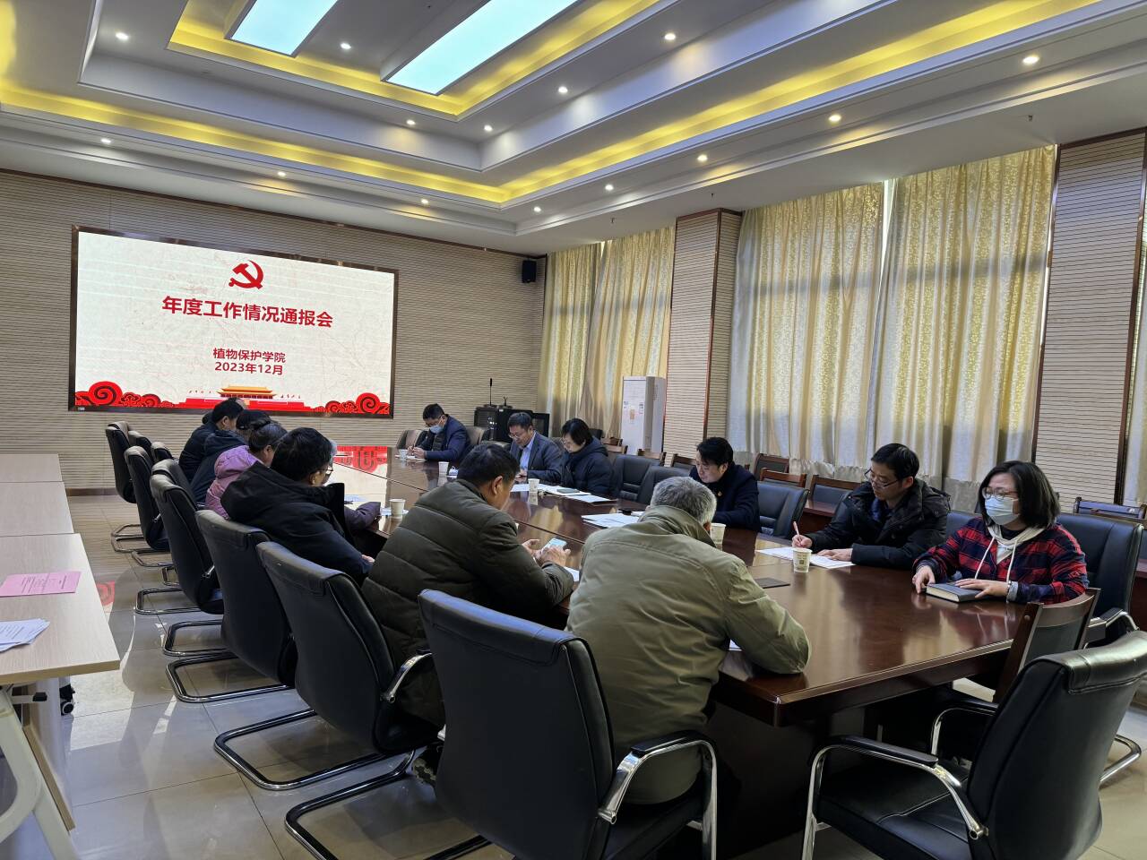 本网讯 12月27日下午,植物保护学院2023年度工作情况通报会在中西部综合楼1213会议室召开,学院党政领导、退休教工代表、民主党派代表参加会议,会议由学院党委书记刘柳主持。
