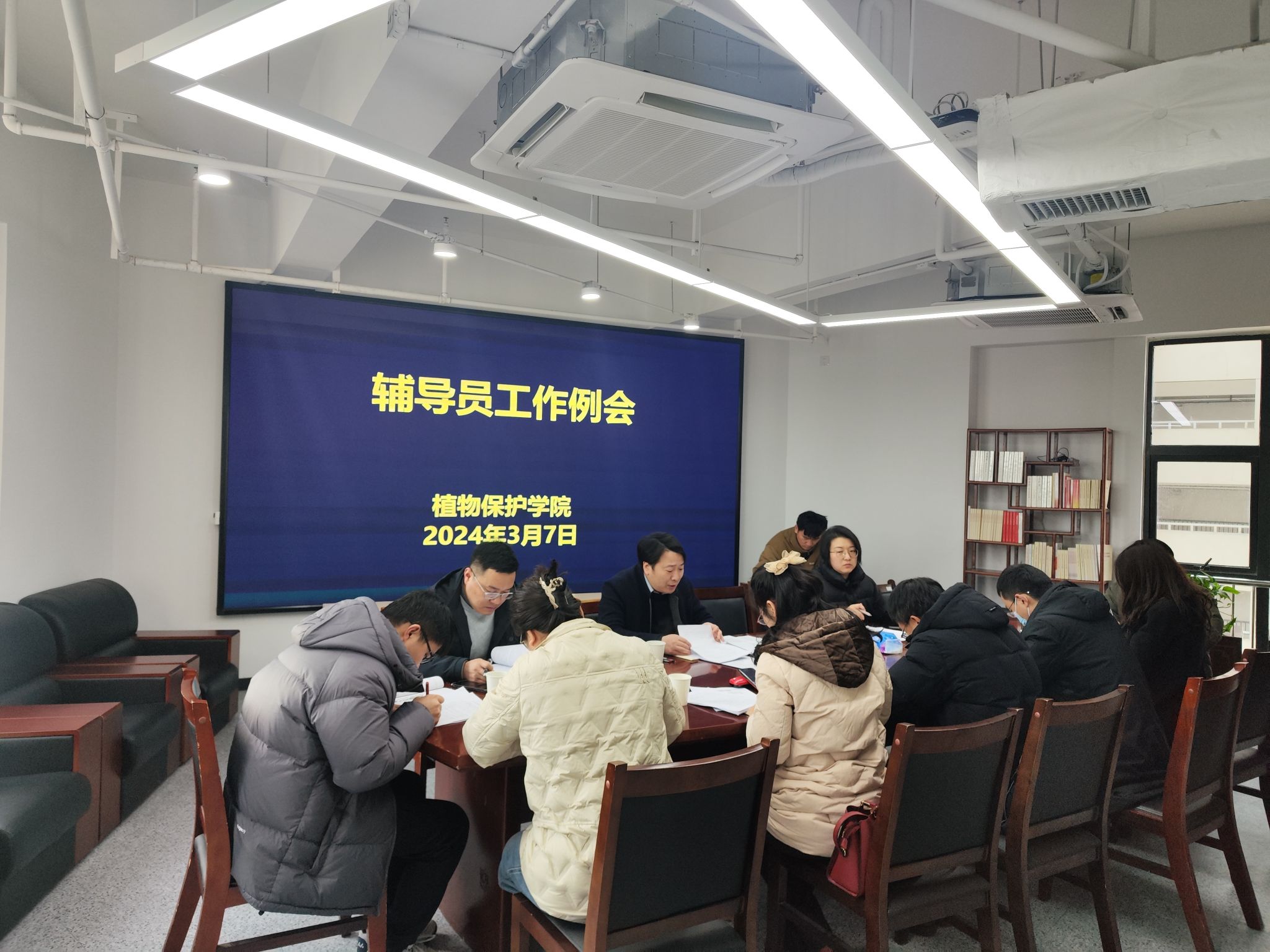 本网讯 3月7日上午,植物保护学院在研究生公寓B楼1501室召开辅导员工作例会,全体专兼职辅导员参加,会议由学院党委副书记汪小强主持。