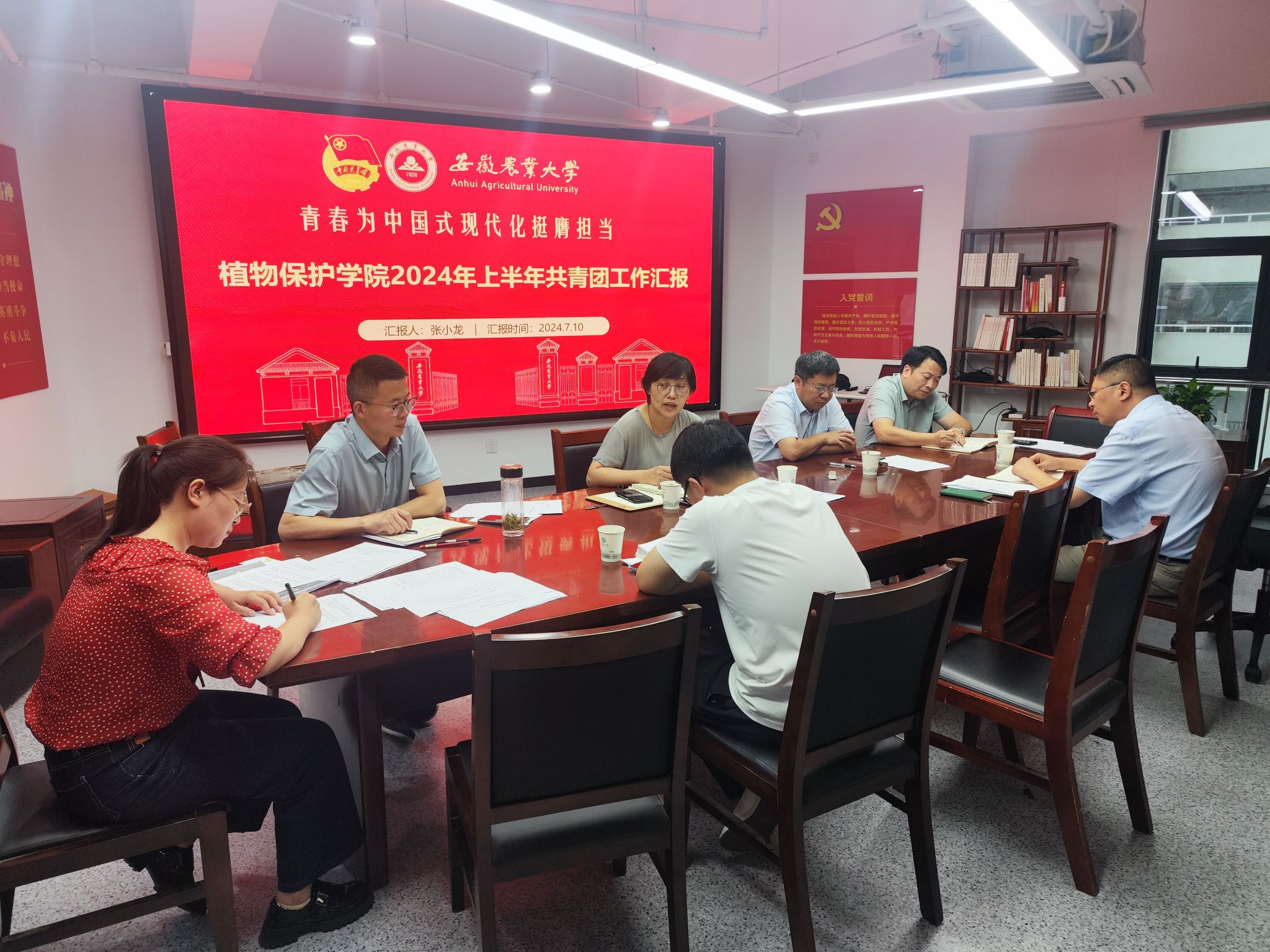 学院团学工作负责人从坚持思想引领、基层组织建设、服务青年成长、不足与下一步计划等方面依次汇报学院上半年共青团工作的开展情况,总结经验,反思不足,并汇报下一阶段工作计划。