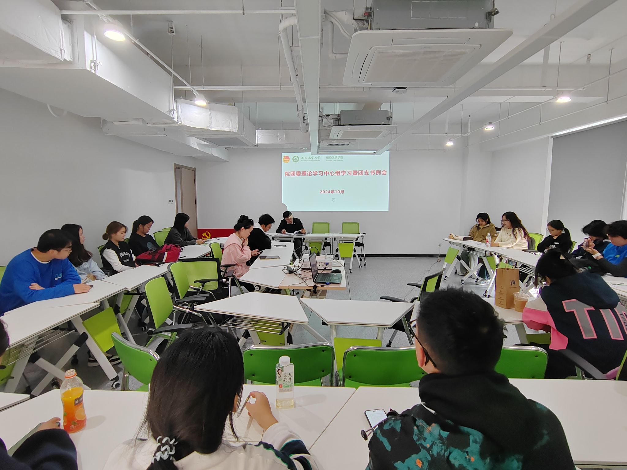 本网讯 10月31日,学院在研究生公寓B楼1405室召开团委理论学习中心组会暨团支书例会。会议由学院团学工作负责人主持,院团委委员、非毕业班团支书参加。