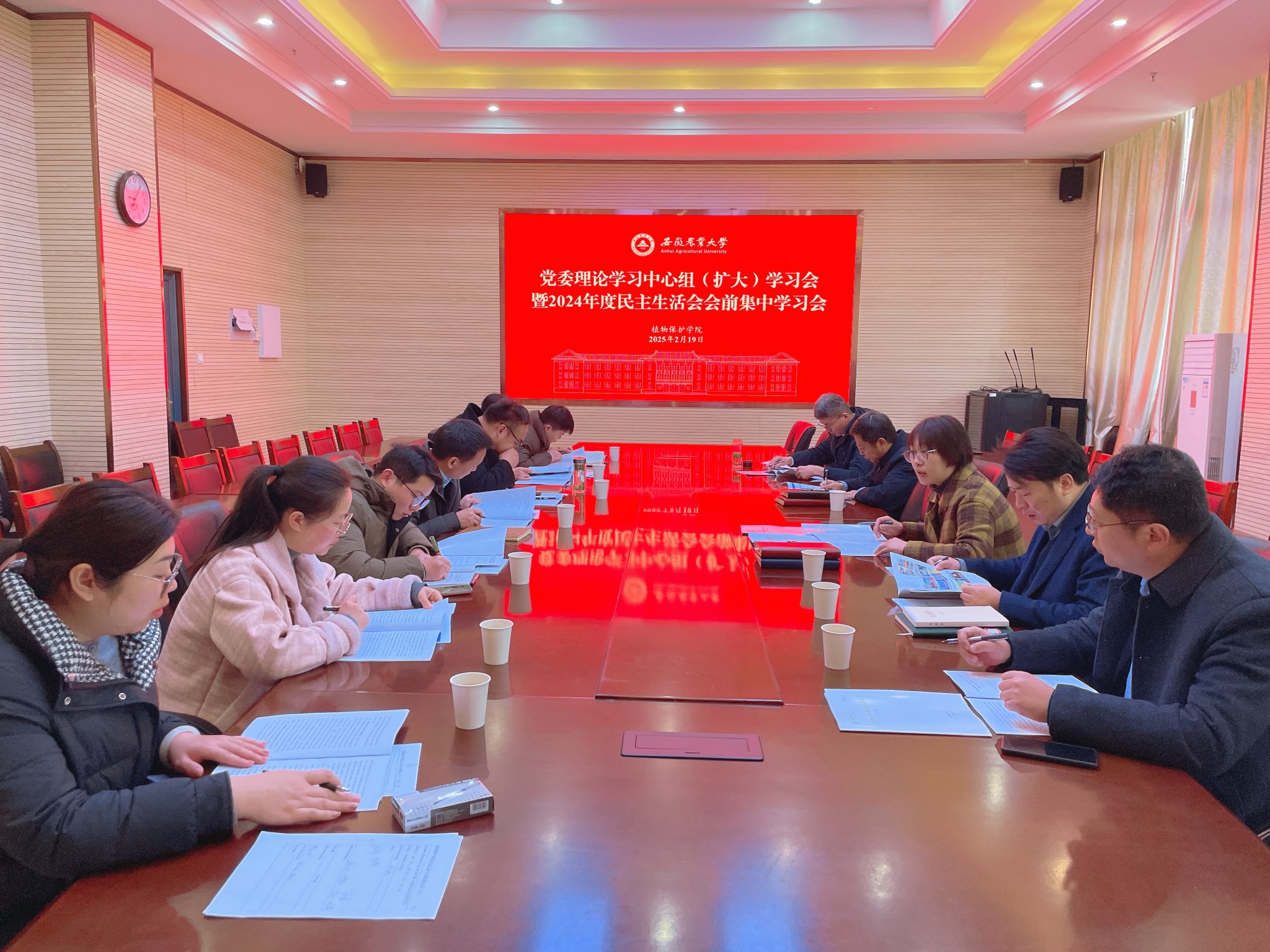 本网讯 2月19日,学院党委在中西部综合楼1213会议室举行党委理论学习中心组(扩大)学习会暨2024年度民主生活会会前集中学习,会议由院党委书记刘柳主持。