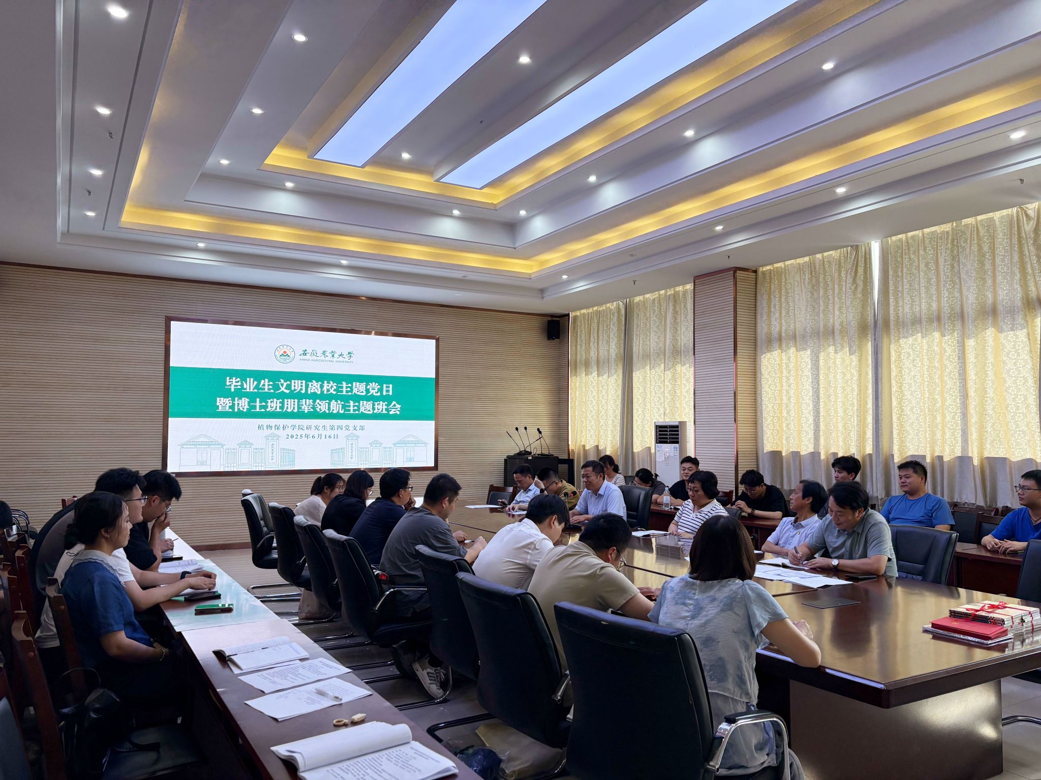 6月16日,学院组织博士研究生毕业生与导师代表,举办博士研究生毕业文明离校主题党日暨博士班会。院长潘月敏出席会议并给全体博士研究生上思政课。学院研究生第四党支部全体博士研究生党员和2022级、2023级、2024级全体博士研究生参加会议。会议由学院党委副书记汪小强主持。