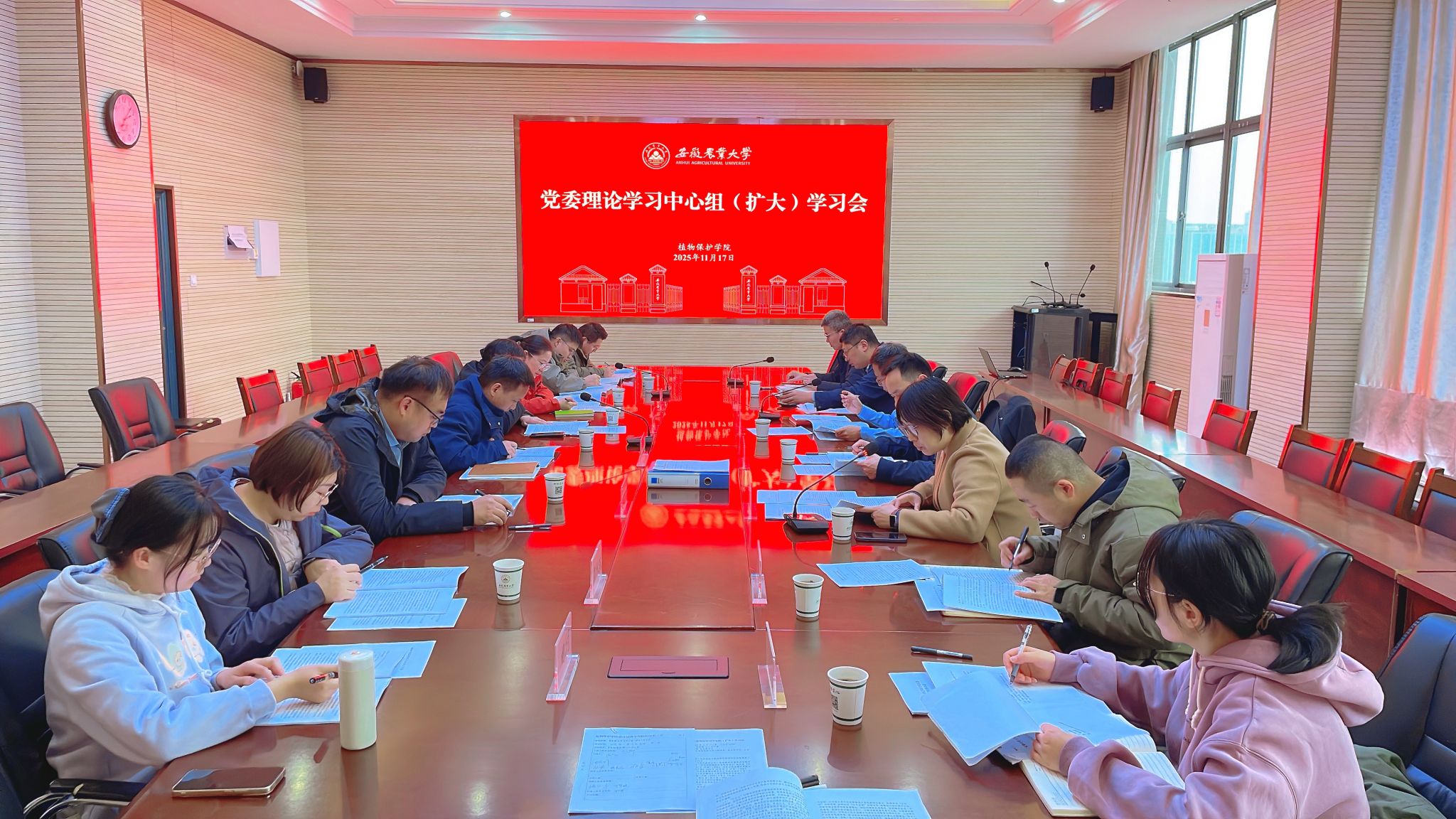 本网讯 11月17日下午,植物保护学院在中西部楼1213会议室召开党委理论学习中心组(扩大)学习会。院党委理论学习中心组成员、各党支部书记、辅导员参加了会议。工学院党委书记张立付、辅导员代梦蝶列席旁听。会议由院党委书记刘柳主持。