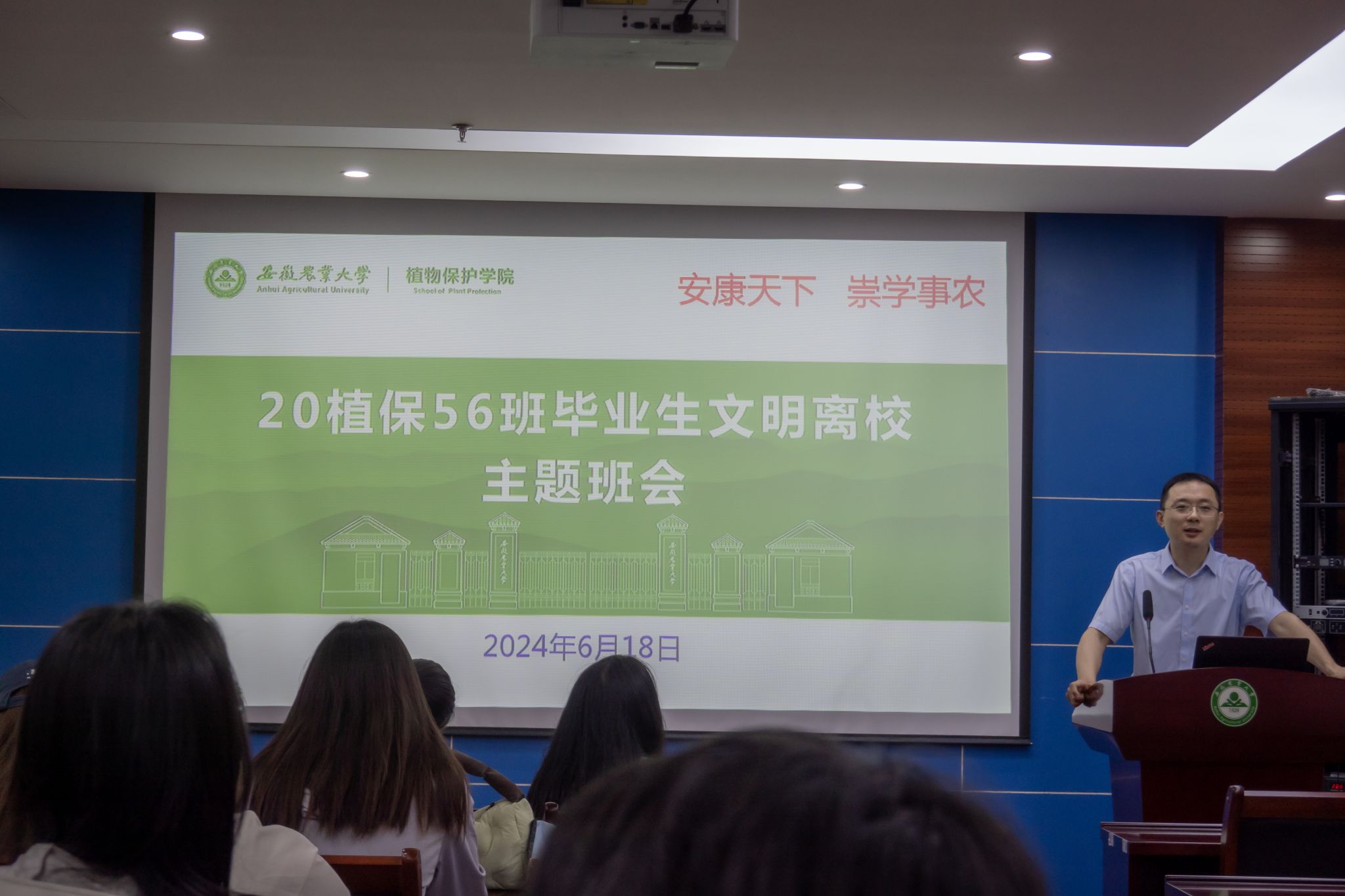 学院组织毕业生在离校前自觉开展最后一次寝室大扫除,将一个干净整洁的“家”留给学弟学妹。围绕安全工作、就业征兵、寝室卫生检查、毕业生文明离校等方面开展“植保夜话”。