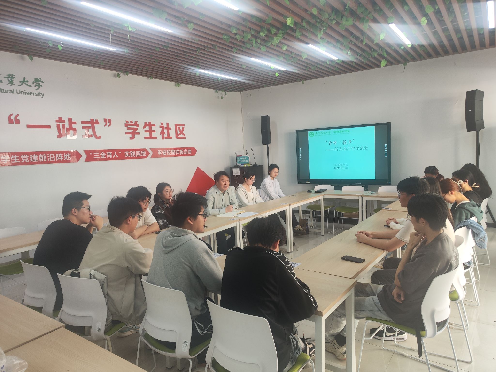 青听·植声—用真情共筑植保大家庭。为深入推进为学生办实事工作,及时解决转专业学生在学习生活上的困惑,4月1日中午,学院在“一站式”学生社区开展转入学院本科生座谈会。会上,院党委副书记汪小强与各年级转专业学生进行亲切交流,每位同学都作了自我介绍并提出在专业学习、人际关系、素拓活动、社会实践等方面的一些困惑。针对大家提出的困惑,学院均一一作了回应。最后,保研同学代表与大家分享了大学四年的学习成长经验。