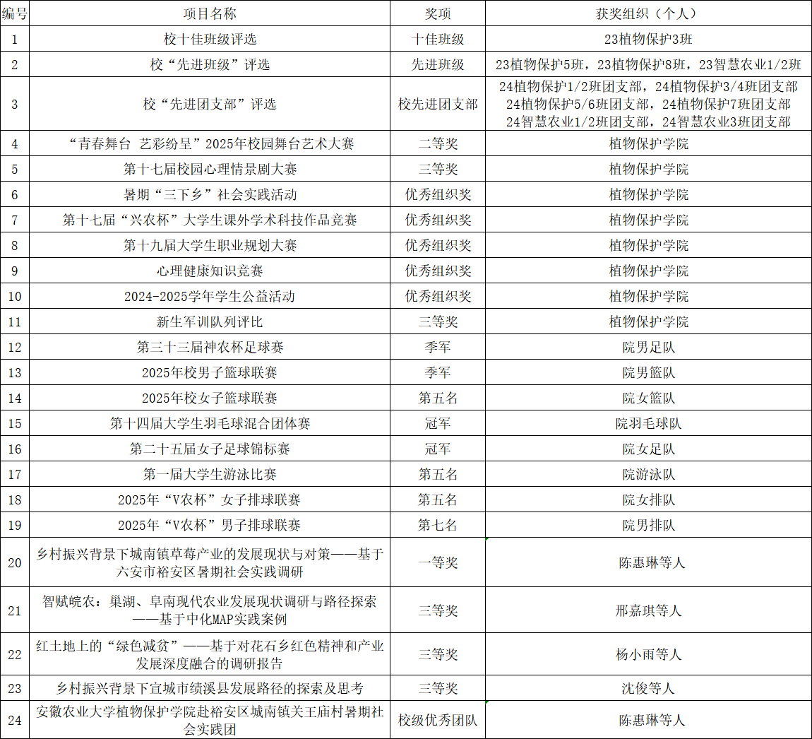 植物保护学院2025年校级及以上文体活动获奖情况