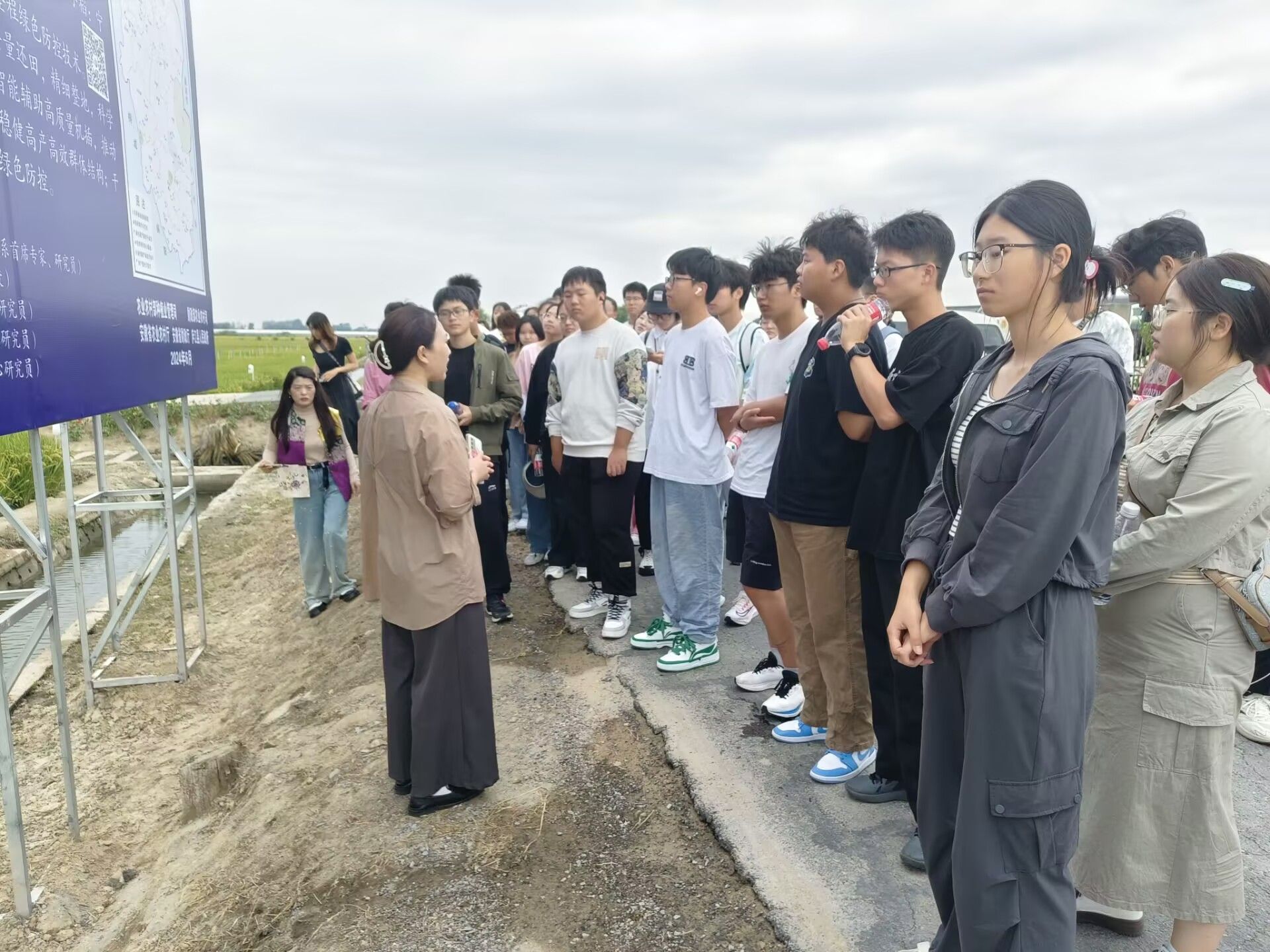 本网讯 “学用‘千万工程’ 礼赞丰收中国”是今年第七个中国农民丰收节的主题。2024年9月22日至27日,学院组织辅导员、班主任带领2024级全体本科新生开展“学用‘千万工程’ 礼赞丰收中国”主题耕读教育实践活动,新生们以班级为单位分别前往桃溪现代农业综合开发示范区、全国水稻绿色高产高效样板区(庐江县)、辉隆庐江万乐现代农业综合服务中心、中化现代农业技术服务中心、皖中综合试验站等企业和站点进行参观学习。在各站点负责人的带领下,同学们参观科技园区、智慧农业管理云平台、蜜蜂博物馆等,近距离接触水稻试验田,进一步加深对所学专业知识在农业中的应用和作用的认识。
